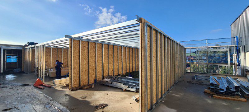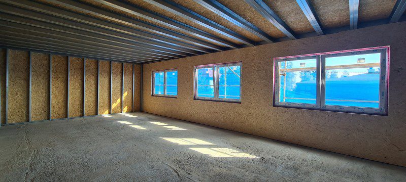 Obvodové stěny: OSB desky + DEKMETAL fasáda