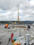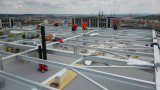 Na 64 metrů vysoké výškové budově v Brně jsme dodávali a montovali pozinkovanou ocelovou konstrukci pro vzduchotechnické jednotky a další technologie. Bylo nutné odstranit stávající navařené ocelové sloupky a nahradit je novými. Pochůzná plocha ocelové kostrukce je tvořena pororošty.